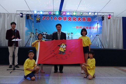 中国驻智利大使馆李宝龙大使在致辞中表示,中华文化大乐园活动是国侨办一项重要的中华文化品牌推广活动,此次国侨办文化司雷振刚司长亲自率队江西教师代表团一行不远万里来智举办“中华文化大乐园”夏令营活动,充分体现了国侨办领导对旅智侨胞的亲切关爱和工作的大力支持,李宝龙大使十分感谢智利北京海外联合会、江西省外侨办以及合作外方学校等为此次大乐园活动的顺利开展做出的大量工作和付出的辛勤努力,大使馆将在国侨办有关领导的支持和关心下继续为旅智侨胞做好汉语教学文化推广活动,最后他预祝此次2016“中华文化大乐园—智利圣地亚哥营”夏令营活动取得圆满成功,祝营员们度过一个难忘愉快的假期。