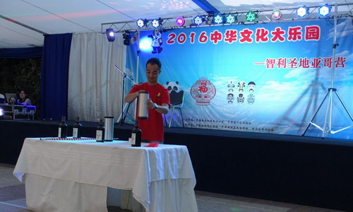 本次2016“中华文化大乐园—智利圣地亚哥营”共有营员近一百人,来自江西九江学院和江西理工大学的12名优秀教师将在接下来近十天的时间里为营员进行中华武术、民族舞蹈、中华书法、书画、戏曲、民族歌曲、茶艺、剪纸、魔术等丰富多彩的文化教学及教学成果展示活动。“中华文化大乐园”是国务院侨办面向海外的文化品牌活动,即组织国内优秀教师团组出访海外,举办夏(秋)令营活动,直接向海外华裔青少年传授中华文化。活动自2011年推出以来,已先后派出600多位中华才艺教师,到6大洲30多个国家、40多个城市举办夏令营活动,吸引了2万多名营员参加,受到广大华裔青少年的普遍欢迎。“中华文化大乐园”是促进中外文化交流、增进友好合作的重要平台。