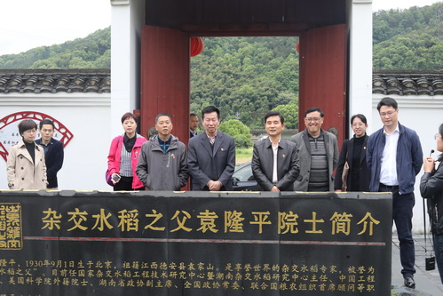 在德安县政府副县长魏堂华等的陪同下,大家跟随着讲解员详实的讲解依次参观。在袁家山科普教育基地,大家先后参观了袁隆平院士成就展和杂交水稻的发展历程图片展,详细了解了以袁隆平院士为首的中国农业科学家从上世纪六十年代开始,开展杂交水稻研究的艰辛过程。通过长期艰苦的科学攻关,成功培育出“三系杂交水稻”,创造了大幅度提高粮食产量的奇迹。通过参观学习,大家深切体会到袁院士为粮食增产、解决百姓温饱所做出的卓越贡献。