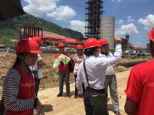 座谈会结束后,倪平平主任带领师生参观了公司厂区。马德望海螺水泥公司占地一千四百亩,除大部分已建成的工作区、办公区、住宿区外,其他休闲娱乐配套设施如足球场、篮球场等也在陆续建设中。参观过程中,学生们用汉语与中国工人进行了交谈,中国工人们夸赞学生汉语说得好,希望他们继续坚持学习,将来有机会一起工作。