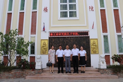 7月24日下午,上海景格职业教育研究院副院长牛文俊一行访问了柬埔寨王家研究院孔子学院,孔子学院谢莫尼勒院长(H.E. CHEA Munyrith)、中方院长夏修龙热情接待了牛副院长一行。