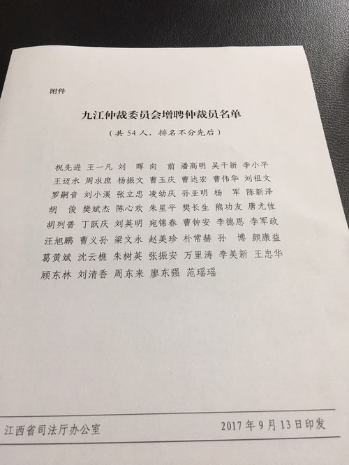 根据江西省司法厅赣司法制字(2017)19号文件的批复,我校政法学院的宛锦春、曹钟安、李德恩、李军政、汪旭鹏等五名法学专业教师増聘为九江仲裁委员会仲裁员。