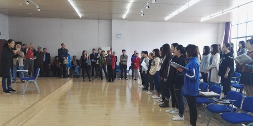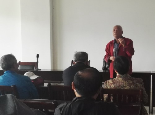年满85岁的老教授陈义明参观后激动地在总结会上献歌一首,表达对学校的无限热爱和深情。