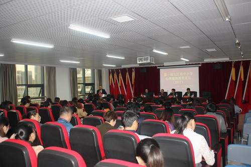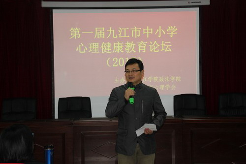 10月14日,由九江学院政法学院、九江市心理学会联合主办的九江市第一届中小学心理健康教育论坛在九江学院八里湖校区举行,来自全市57所中小学校的70余名中小学心理健康教育的专业教师参加了论坛,江西财经职业技术学院、九江职业技术学院、九江职业大学的心理健康教育专家代表以及九江市教育科学研究所张放副所长、浔阳晚报教育周刊童颖冰主任、共青团九江12355服务中心邢久旺主任、九江学院报编辑部梁光霞教授、九江爸妈在线熊毅董事长等也应邀参加了论坛。