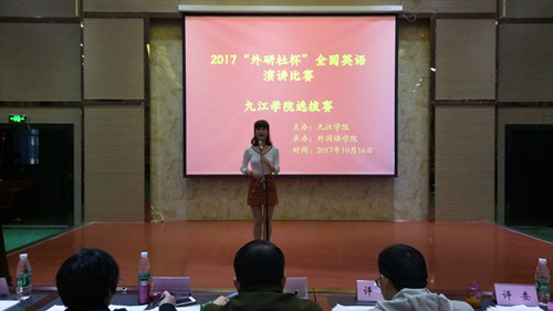 10月16日晚,2017“外研社杯”全国英语演讲比赛九江学院选拔赛决赛在香远楼三楼报告厅顺利举行。外国语学院院长韩琨、副院长柴克清出席了本次比赛。周志高、章志红、项莉、廖凯、万敏5位老师担任此次比赛评委。