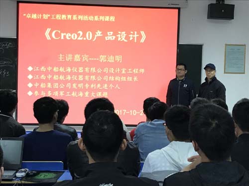 10月21日上午,江西中船航海仪器有限公司设计室郭迪明工程师为机材学院第三期“卓越计划”试点班讲授《CREO产品设计》。