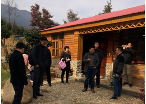 光阳生态园负责人欧阳国松对大家的到来表示欢迎,带领李院长及随行老师参观并介绍生态园的发展历史及现状。光阳生态园始建于2008年,占地600余亩,园内主要有庐山云雾茶、油茶、樱花、果木种植。2013年开始开展农业观光和农家乐活动,截止目前,接待国内外游客10万人次,是较为成熟的生态农庄,但目前面临规划及园区管理的发展瓶颈。希望能够加强与旅游学院的合作,进一步推动生态园的有序发展。