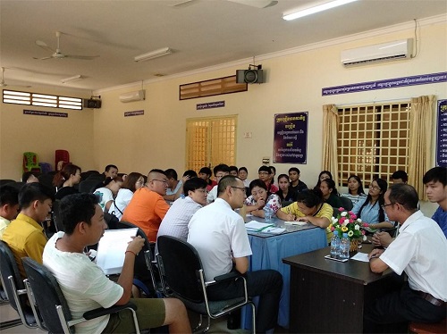 2月4日下午,柬埔寨王家研究院孔子学院西哈努克省高级中学汉语中心举办了“中柬导游交流会”。西哈努克省教育厅林江老师(Lim Kheang)、港威国际旅行社肖军总经理及中国籍导游、汉语中心旅游行业从业学员、汉语中心师生30余人参加了此次交流活动。