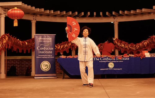 随着萨凡纳州立大学校园的夜空被一朵朵绽开得灿烂无比的璀璨烟花点亮,现场欢呼声不断,大家纷纷抬头仰望祈福,将这一瞬间的美丽凝结成难忘的回忆。活动期间,有许多外国朋友主动向孔院请教和学习汉语新年问候语,有的则跟着转起了红色的八角巾,扭起了东北秧歌,还有的拿起扇子,有模有样地学起了太极功夫扇。随后,孔院教师还组织大家进行了踢毽子、跳绳、抖空竹、筷子夹花生等竞技游戏,现场观众积极参与,争先恐后,每一位获得孔院纪念品的外国朋友脸上都露出了欢乐、灿烂的笑容。