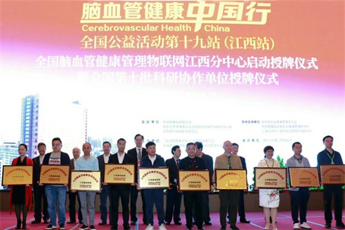 15日上午,大会举行了脑血管健康管理物联网江西分中心启动授牌仪式,临床医学院/附属医院体检科作为此项目的参与单位科室之一,将与江西各级医院及科室一道,全面开展脑卒中早期预警与脑血管健康管理工作。此次加入脑血管健康管理物联网江西分中心,也标志着该院体检科已从简单健康体检向健康管理成功转型。