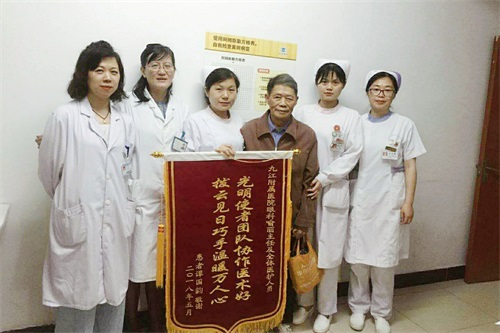 5月7日上午,一位82岁高龄的白内障术后患者,来到临床医学院/附属医院眼科,将一面锦旗送交喻丽主任及曾晓峰副主任医师手中,上面书有“光明使者团队协作医术好,拨云见日巧手温暖万人心”字样,以表达对该院眼科医务人员的精湛医术及优质护理的高度赞扬。
