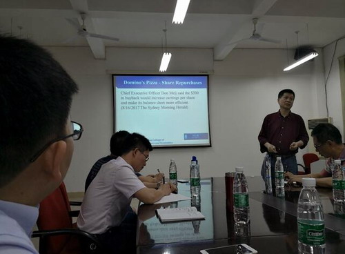 谢宏教授以Domino’s Pizza公司发布的股票回购计划带来的股价变化为引入案例,对资本市场上公司股票回购的动机与经济后果进行了实证分析,并就增强市场透明度、加强对公司盈余管理行为的监管力度提出了建议。