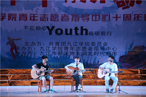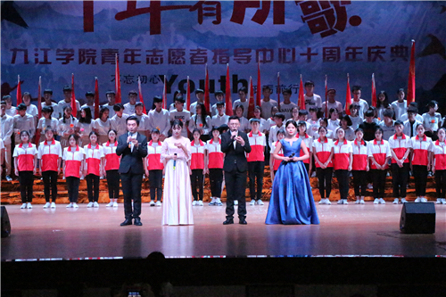 九江市青年志愿者协会会长、校团委书记闫来英在晚会上致辞。他指出:“我们举办今天的晚会,其目的就是要动员和凝聚更多的青年来服务社会、奉献爱心、传承文明。青年志愿者活动,是一项崇高的公益事业,也是大学生建功新时代、勇担新使命的重要平台。希望同学们不忘初心、牢记使命,坚持与祖国同行、为人民奉献,感召更多青年学生和社会公众加入志愿者服务行列”。