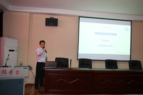 杨教授从热电材料的Seebeck效应、Peltier效应和Thomson效应三大可逆热电效应开始,简要介绍了热电材料的工作原理、热电材料温差发电和制冷的优点、以及热电功能器件在军事、民用等领域的广泛应用前景。针对热电输运的协同调制的历史性难题和如何提高热电转化效率等关键问题,详细介绍了国内外在梯度结构(Gradational Structure)的热电材料、填隙方钴矿锑化物(Filled skutterudite antimonides)、金属氧化物(Metal oxide)和低维热电材料(Low Dimensional Thermoelectric Materials)等方面的热电材料研究现状。最后介绍了华中科技大学热电材料研究课题组在碲化铋(Bi2Te3)、铟硒合金(Indium selenide alloy)、填隙方钴矿锑化物等热电材料研究方面的出色工作和世界一流的研究成果。
