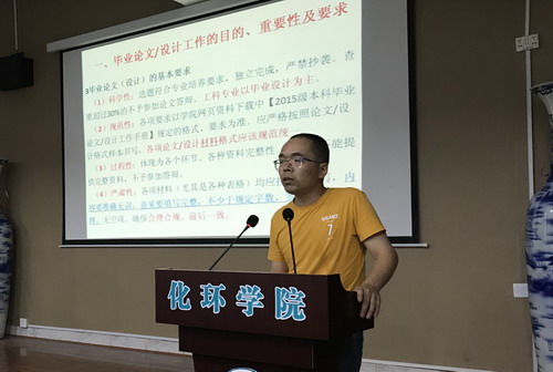 会上,教研科李仙芝老师就2018届毕业生毕业资格审查及学位授予情况进行了通报,并公布了2019届本科生学业警示情况。教研科曾湘晖老师汇报了化环学院2018届本科毕业论文(设计)的完成情况。曹小华副院长对2019届本科毕业论文(设计)工作进行了动员,强调了本科毕业论文工作的目的、重要性及相关要求,解读了2019届本科毕业论文(设计)的流程及进度安排。此外还简要通报了本科生2018年考研情况,介绍了毕业论文(设计)在研究生复试中的重要意义,鼓励同学们积极报考研究生,力争顺利实现研究生梦想。实验室胡小铭教授对本科毕业论文实验耗材申购及安全管理要求进行了说明。江西省生态化工工程中心胡华南博士介绍了工程中心良好的科研条件和环境。