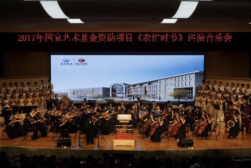 6月21日、22日,艺术学院欧阳时来副院长携艺术学院管弦乐团、合唱团100多名师生,奔赴共青市和九江市柴桑区展开国家艺术基金2017年度资助项目——合唱《农忙时节》的巡演。根据国家艺术基金管理中心在演出过程中边演边改的要求,课题组在课题申报成功之后就组织相关专家对作品提出修改意见,在首演之后继续进行充实修改,此次将《农忙时节》再次带到九江周边县市进行巡演,为该作品的推广和传播起到了重要作用。