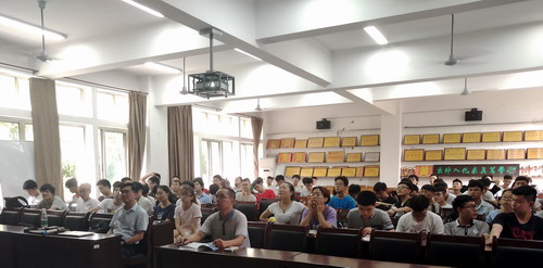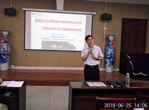 宣讲会上,朱院长通过视频短片、PPT宣讲等形式简要介绍了常州大学的地理位置、学位点、招生政策、研究生培养计划、学科研究平台等相关信息,详细解读了该院2019年研究生招生计划和报考注意事项,就常州大学研究生学习、生活、资助政策等情况和同学们进行了交流。随后,朱院长结合自己的学习经历与在座同学分享了自己的考研经验,并提醒同学们一定要结合自身情况明辨慎思,做出最适合、最有利于自己成长以及长远发展的选择。同学们认真聆听了此次宣讲会,在提问环节中就研究生招生政策、考试科目等问题提出自己的困惑,与朱院长、王教授进行了热烈的互动交流。