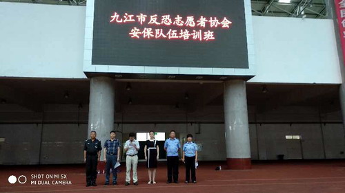 7月7日上午,九江市反恐志愿者协会安保队伍培训班开班仪式在我校田径馆举行,九江市反恐支队支队长杨军、反恐支队副支队长殷勤、特警支队副支队长黄问勇、九江学院保卫处处长张晓明、九江学院综治办主任王英资出席开班仪式。开班仪式由反恐支队副支队长李晓君主持。九江市反恐志愿者协会安保队伍及九江学院安保队伍、保卫处全体人员参加开班仪式。