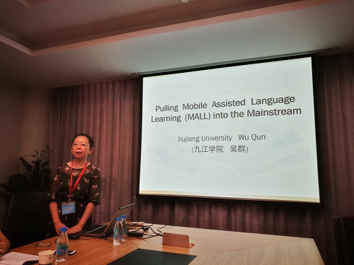 外国语学院吴群老师作为“信息化时代的使用智能手机开展英语教学模式有效性探讨研究”国家社科基金课题组的负责人,于18日下午在分论坛做了主题为“Pulling Mobile Assited Language Learning into the Mainstream” 的发言,并与现场听会者进行了学术研讨与APP技术交流。