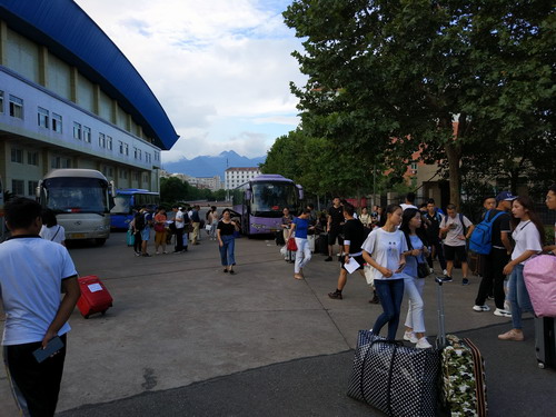 8月31日早上7点30分,参加支教的同学们准时到达集合点,在每辆车随车带队教师的指引下,找到自己所去县(市区)的大客车,摆放行李,有序登车。实验中心方向明主任、教务处师范科杨泽明科长到集合出发点协调指挥,并为支教学生送行。8点整,车队准时出发分别前往各县(市区)教育局。