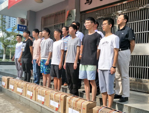 石药集团作为药生学院的实习、见习基地,双方合作关系融洽,在得知2018级新生即将进行军训,需要防中暑药品,9月6日上午9点,石药集团在心远楼前给药生学院新生捐赠了藿香正气水等防中暑药品。药生学院新生代表参加本次捐赠仪式,石药集团董事长杨栋、副总理邓胜和学院党委鲍海鸥书记,副院长张小谷、王春娥、余敬谋,院长助理吴家忠、学生科科长徐常龙及部分辅导员班主任出席本次捐赠仪式,仪式由张小谷副院长主持。