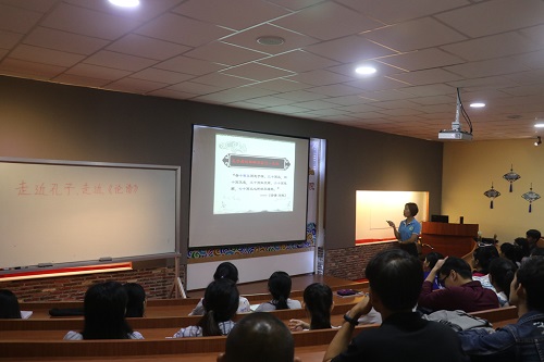 9月28日,恰逢孔子诞辰2569周年,柬埔寨皇家科学院孔子学院本部开展“孔子学院日”系列活动。当晚,在柬埔寨皇家科学院孔子学院总部三楼圆桌会议室,孔子学院本部汉语教师志愿者边贝贝老师、章伟丽老师面向孔院本部汉语高级班学员举办了以“走近孔子,走近《论语》”为题的大型传统文化讲座。该讲座旨在纪念伟大的思想家、教育家孔子,从而让更多的汉语学习者了解孔子的思想理念和中国传统文化。