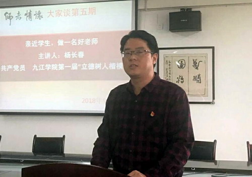 今年上半年,我被评为九江学院第一届“立德树人楷模”,我感到特别欣慰,也特别忐忑。我并没有做出什么特别突出的业绩,却获得如此高的荣誉。所以,我的发言,首先要说的是感谢,感谢同学们,感谢老师们,感谢各位领导,感谢你们对我的鼓励!