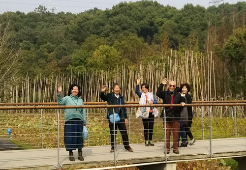 阳光明媚,微风习习,鲜花怒放,彩蝶纷飞,栈桥上、山门前,一群老先生老太太或蹒跚而行,或健步如飞,或流连濂溪溪畔,或暂歇爱莲亭边,自然美景的陶醉,老友重逢的喜悦,他们的脸上洋溢着欢乐的笑容,阵阵开怀的笑声在林间回荡。这是10月17日民盟九江市委会组织开展的2018退休老盟员重阳节活动的现场——九江市濂溪公园。民盟九江学院委员会组织老龄支部的13位退休老盟员参加了本次重阳节游园活动,和其他支部的退休同志们一起欢度“敬老节”。