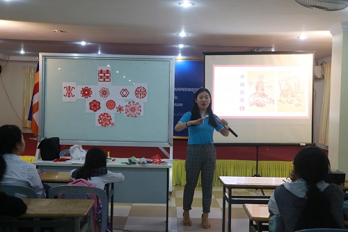 柬埔寨皇家科学院孔子学院金边高棉大学举办“九九重阳节 浓浓敬老情”主题剪纸活动