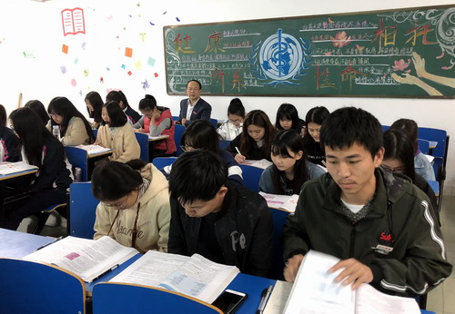 下午,车向新院长来到检验A1741班,在华文楼103教室听刘燕老师的《肿瘤》这一章节内容。刘老师从肿瘤的扩散开始授课,密切联系临床,讲解肿瘤的分级和分期对临床的重大指导意义。特别是在讲授“肿瘤对机体的影响”和“癌前病变”等知识点时,穿插大量精美图片同时还附上视频,让同学们很快理解其中要义并深入脑海记住。同时,刘老师结合自己外出进修学习的体会,结合医学检验专业的特点,引导学生加深对病理、检验和临床知识的区别与联系。