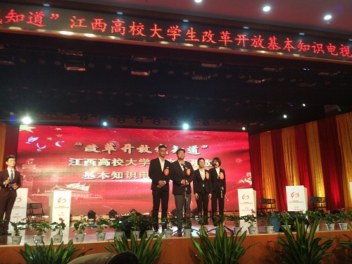 10月28日上午,“改革开放我知道”江西省大学生改革开放基本知识电视竞答赛在江西制造职业技术学院举行。我校代表队取得了本科院校团体第四名的成绩,荣获比赛三等奖。