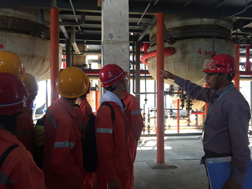 江西晨光新材料股份有限公司一分厂负责人徐光华厂长给同学们详细介绍公司主要产品三氯氢硅的生产工艺流程。同学们将理论和生产实践进行了很好的结合,加深了化工产品生产的感性认识。