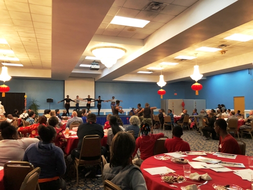 九名身着中国传统服装的美国学生,高举一条金黄色中国巨龙,雄赳赳气昂昂地环游校园一周后欢快入场,引起全体观众沸腾,掀开了表演序幕。曾经到访九江学院的黑曜石舞蹈团为来宾献上了一曲动感十足的开场舞。四名孔子学院的学员身着红色唐装,扭起了中国时下流行的《海草舞》,许多观众在台下跟着一起摇摆。几名身着中国少数民族服饰的孔子学院学员,伴着《爱我中华》的旋律,上演了一场别开生面的少数民族风情秀,缤纷的服饰在不同肤色的映衬下,显得格外绚丽多姿。著名旅美小提琴家犹娜女士为观众献奏了知名曲目《秘密花园》和中国民歌《茉莉花》。专程赶来祝贺的亚特兰大中国舞蹈社李凯妮女士带来了《苗家姑娘》和《扇舞丹青》,还与黑曜石舞蹈团共舞一曲,象征东西方文化交融。