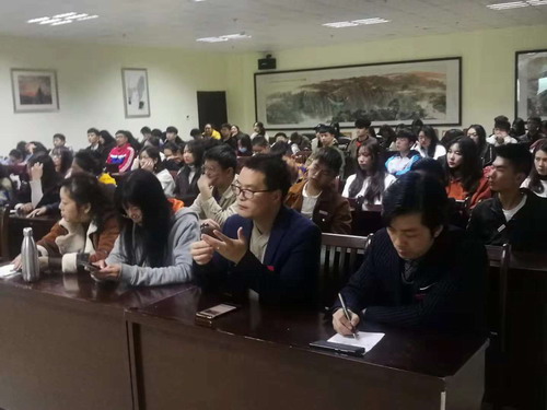 11月6日晚,原艺术学院院长,中国美协会员龚晓天教授应邀为艺术学院师生作了一场题为"作为意识形态的艺术之路“的学术讲座,讲座由艺术学副院长虞斌主持,100余名师生到场听取了讲座。