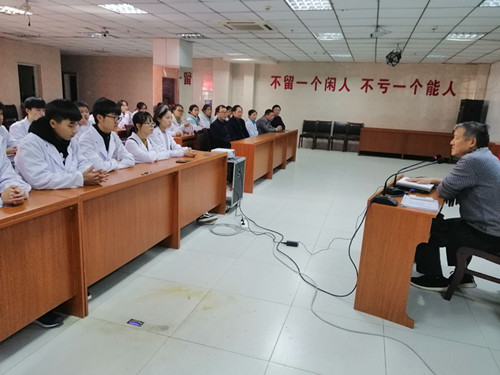 见习活动的第一项内容是由共青城新市医院医务科的淦主任带领同学们参观医院门诊部各科室及住院部内、外科、儿科、精神科等科室,凎主任对各科室的相关情况一一进行了介绍,并不时解答同学们提出的问题,使同学们对基层医院的架构和功能有了一个初步的了解。第二项见习内容是听课,在医院学术报告厅,先由医务科淦主任作了“如何成为一名优秀医学生”的报告,凎主任是一位受人尊敬的老医生,他用自己一生行医的切身体会告诉同学们在学校期间应该如何进行有效的学习、有效的沟通,如何成为一个合格和优秀的医生“胚子”,向同学们强调了基础工作者的重要责任,强调了医学基础知识学习的重要性,医学相关法律法规学习的重要性,凎主任最后希望同学们不仅要努力学习,更要树立为人民服务、为基层服务的思想。第二堂课由共青城新市医院公共卫生科的闵主任讲授基层医院医生如何开展基层公共卫生服务,闵主任向同学们详细地讲解了“国家基本公共卫生服务规范”中的各个项目,引导同学们重视和关注基层公共卫生服务,更好地为基层老百姓服务。