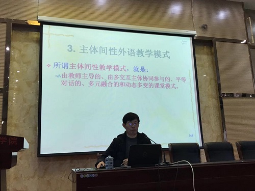为推进学院科研工作建设,加大学科建设力度,南京师范大学王永祥教授、博导应邀于12月13日下午到外国语学院做了题为《从教师中心到学生中心,再到主体间性外语教学模式》的学术报告,外国语学院全体教师参加,报告会由副院长周志高主持。