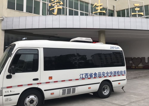保证食品原材料安全是确保食品安全的第一道防线。食品安全快速检测仪能够让消费者及时掌握不合格食品信息,从源头上保障日常饮食安全。2月25日上午,九江市濂溪区市场监督局食品药品快速检测车搭载的食品安全快速检测设备,开进九江学院,为师生食品安全保驾护航。九江市濂溪区市场监督局曹亮副局长,区检察院公诉科李莉科长,九江日报社,濂溪区电视台,掌中九江新媒体,九江学院后勤管理处饮食服务中心等单位和媒体参加了活动。据悉,食品药品快速检测车开进校园在九江还是首次。