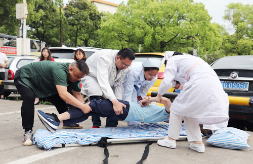 与此同时,急诊科迅速启动应急预案,组织相关科室医护人员集结待命,开启绿色通道,做好抢救的人员和设备等准备工作。经事故现场的初步处置,伤员被转运至医院,急救人员密切配合,进行分类救治。专家组会诊并观察患者病情变化,协同医生安抚患者及家属;护士长做好诊治登记,向到达现场的领导汇报伤员情况和救治情况。伤员们均得到及时、妥善救治,演练过程结束。