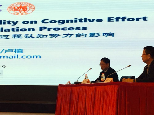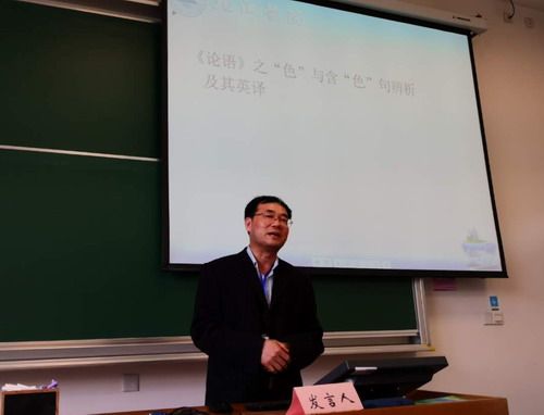 九江学院国学译馆负责人、外国语学院桑龙扬教授参加了本次研讨会。桑教授是中国翻译认知研究会常务理事。桑教授在分论坛上做了题为“《论语》之“色”与含“色”句辨析及其英译”的报告,同时介绍了九江学院“国学经典公理化”研究和“国学译馆”翻译出版的《<论语>的公理化诠释》和《<孟子>的的公理化诠释”》中英对照版的成果,并在该分论坛上担任点评专家。