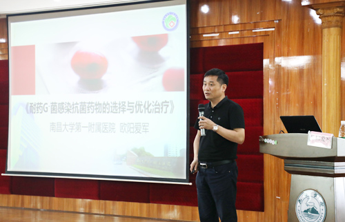 欧阳爱军主任以《耐药G-菌感染抗菌药物的选择与优化治疗》主题,结合抗菌药物药代动力学/药效学理论,深入浅出地讲解了在临床上常用抗菌药物的选择与优化治疗、各类抗菌药物的适应症及特点,并与临床医学院/附属医院医务人员现场互动交流,耐心解答与会人员的提问。