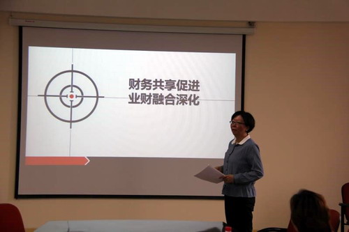 聘任仪式结束后,客座教授张蕾作了一场题为《财务共享促进业财融合深化》的学术报告。她从财务共享建设目的出发、结合业财融合实例,分享了业财融合途径;并讲解了财务人员岗位的重要性、职责分工和传统财务角色转型的必要性。