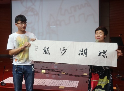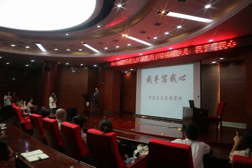 为诵读名家经典,交流求学、治学、品书的经验,营造浓郁的校园文化氛围,5月23日晚,校图书馆特邀江西省书法家协会副主席曹端阳先生和我校首届师德师风标兵吴若飞老师做客2019年第四期“蝶湖沙龙”,在逸夫图书馆报告厅为我校师生带来了一场主题为“我手写我心”的公益讲座。师生代表及校外文学书法爱好者约300多人聆听了讲座,现场座无虚席。图书馆谢艳老师及嘉宾吴若飞老师共同主持了讲座。