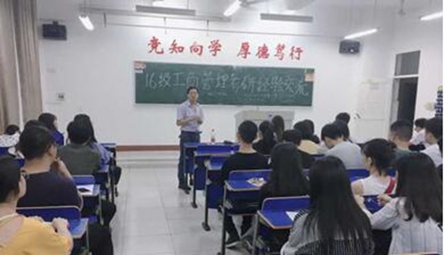 交流会由A1622班班长谢春明同学主持,三位受邀同学分别为同学们做了精彩的考研经验分享。首先,林知慧同学从目标定位、学校选择、心态调整、学习计划、考试科目等方面分享了她的考研经验与心得。她认为考研是一个较漫长的准备过程,是毅力的考验,要做好目标规划,要注重劳逸结合,张弛有道。随后,田冲和汪钰琳同学帮助同学们了解了考研的一些基本事项,总结了考研中一些将会遇到的问题并提出相对应的解决办法,并向即将参加考研但仍有些迷茫的同学们大致地说明考研方向。他们将考研科目细化分析,分享他们的学习经验,殷切细致,同学们获益匪浅。