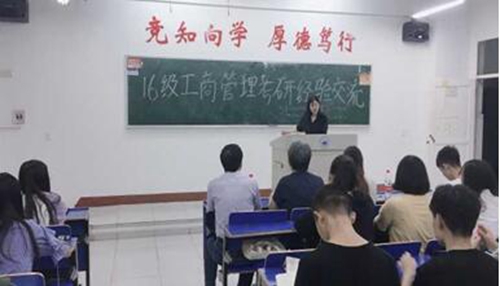 为加强16级工商管理专业学生对研究生入学考试的认知,尽早解决心中的疑虑,近日,工商管理教研室及第五支部在义丰楼501教室举办了考研经验交流会。邀请了15级工商管理专业的汪钰琳(成功考取江西财经大学法硕)、15级物流管理的林知慧(成功考取浙江工业大学物流工程硕士)、15级审计学的田冲(会计学院,成功考取四川师范大学审计学专硕)畅谈考研经验。16级工商管理专业21-22两个班班主任郑汉慧老师和封新林老师参加了交流会。