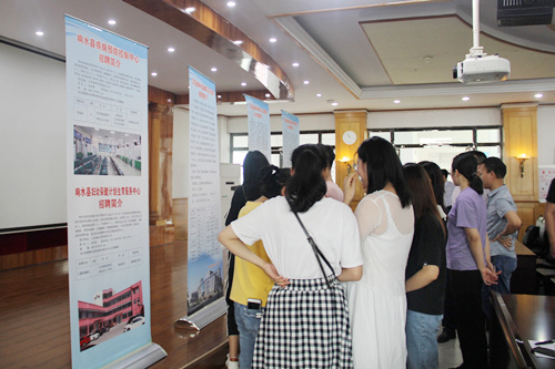 下午,临床医学院毕业生参加了响水县专场招聘会。通过笔试、面试等环节的遴选和体现双向选择的问答交流,该院几十名意向毕业生中,最终有多名优秀学生成功签约。等待体检合格后,他们将直接上编,成为响水县医疗卫生战线的正式职工。