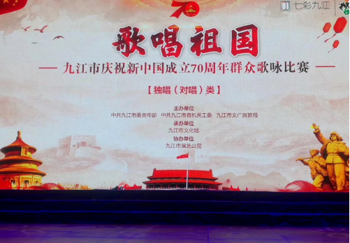 9月2日上午,由九江市委宣传部、九江市直机关工委、九江市文广新局联合主办,九江市文化馆承办的-----歌唱祖国----九江市庆祝新中国成立70周年群众歌咏比赛在九江市文化艺术中心成功举办。