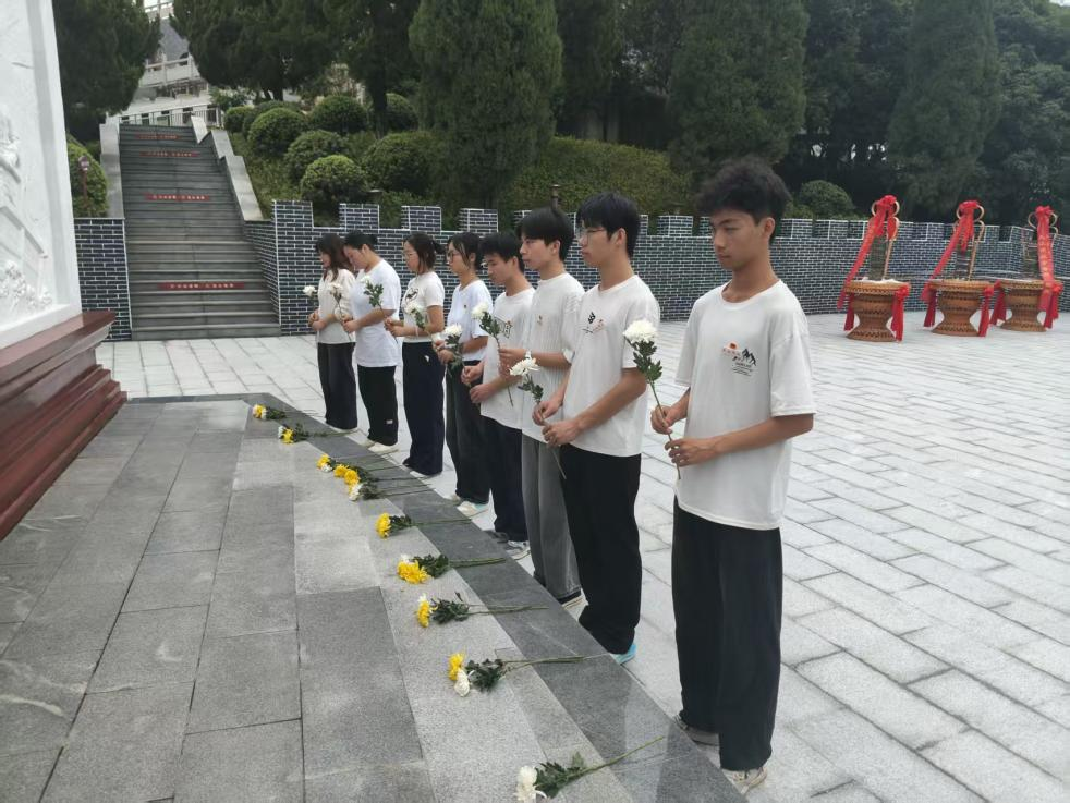 随后,学子们手持洁白鲜花,依次走到纪念碑前敬献花束、瞻仰丰碑,在无声的凝望中与先烈“对话”,感悟革命精神的力量。