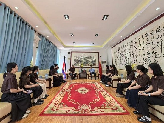 此次会见恰逢庆祝中华人民共和国成立76周年和中秋佳节之际,以双节为契,以教育为纽,让“中国节”的温暖跨越山海,在暹粒的这片土地上洒下一抹“中国红”,照亮了中柬人民的心田。我校孔子课堂教师表示,将继续做好中柬故事的讲述者、民间交流的推动者,为中柬命运共同体建设注入更多人文动力。